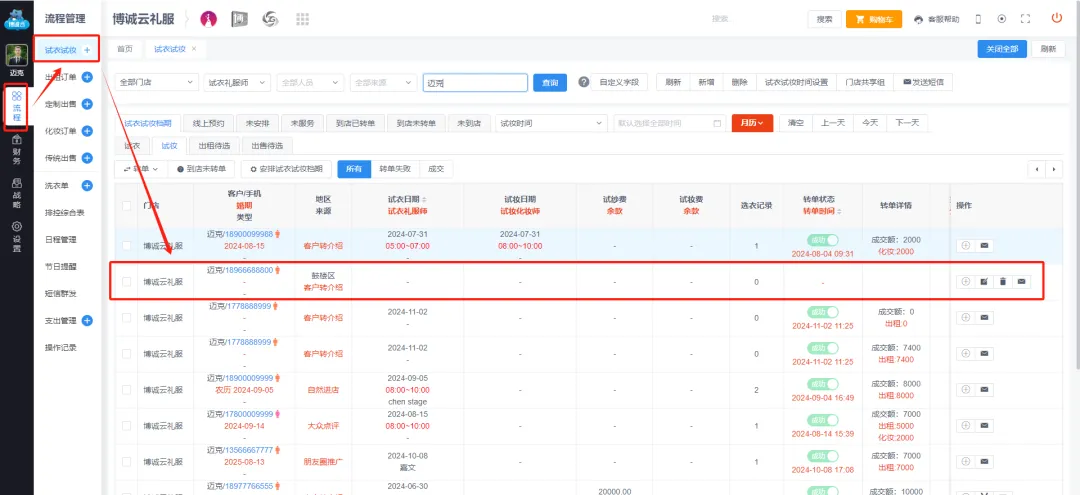 博诚云丨礼服系统中如何将试妆客户转为正式订单