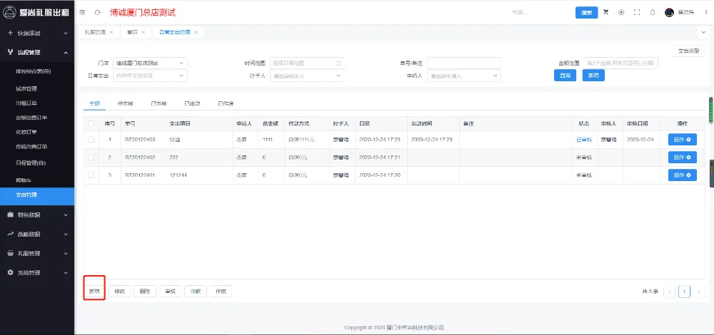 4.登记好以后,财务店长可通过财务数据-支出管理进行当月支出费用查看,当月整体消费情况
