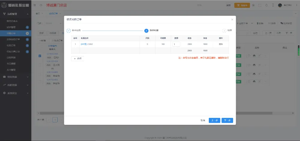 P2答:在我们出租流程中找到自己需要的客户,选择进行修改订单-点击下一步-选择礼服进行添加自己所需要的衣服进行添加确定好点击下一步-结算页面礼服租金可以修改-填写客户金额确定保存-完成修改。